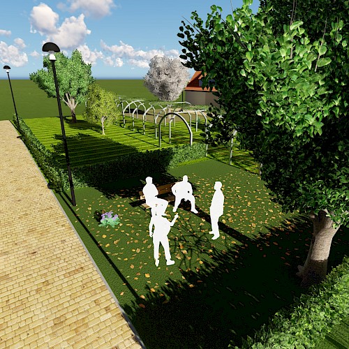 Bij de hoogste zonnestand moet tenminste 50% van het plangebied voor verblijfsplekken en gebieden waar langzaam verkeer zich verplaatst in de schaduw liggen. Deze schaduw creëren we met het strategisch plaatsen van bomen en bebouwing. De bomen die worden aangeplant bestaan uit verschillende soorten voor de stimulering van biodiversiteit en staan zo gepositioneerd dat er voldoende koelte en schaduw wordt geboden.