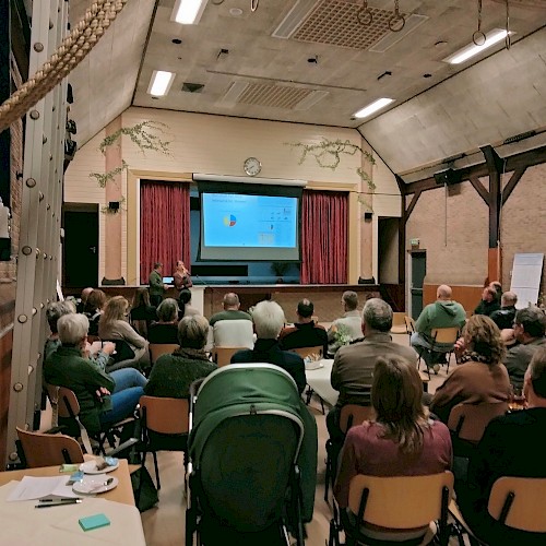 Tijdens een goed bezochte dorpsavond op 14 december hebben we onze opzet voor de dorps(woon)visie gepresenteerd aan de bewoners. Aan de hand van vier themapanelen (verkeer & veiligheid, wonen & voorzieningen, regels voor het bouwen en ‘hoe nu verder’) is de inhoud van de visie getoond en besproken. Bij elk paneel was er de mogelijkheid om vragen te stellen, in discussie te gaan en om aanvullingen aan ons mee te geven.