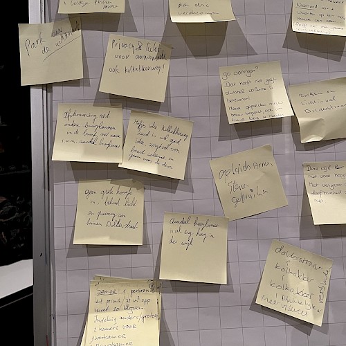 Na de presentatie van de dilemma's met thema's als aanwezig groen, bouwprogramaa, privacy, bezonning en parkeren hebben bewoners in gesprekken met ons hun wensen en zorgen kenbaar gemaakt. We hebben heel veel informatie opgehaald.