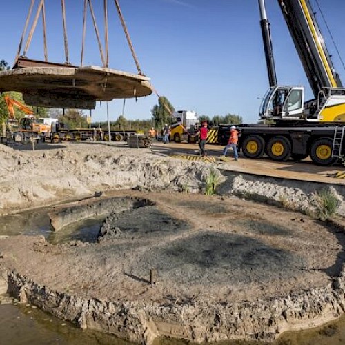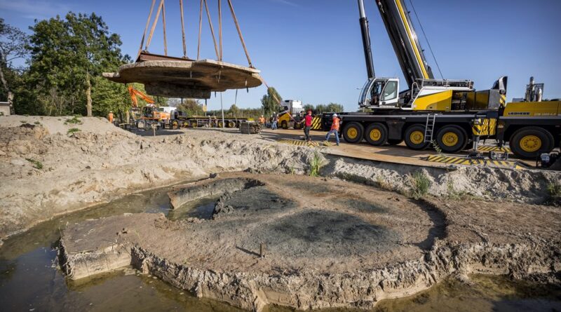 In Hendrik-Ido-Ambacht is de fundering van een Duits antitankkanon uit de Tweede Wereldoorlog verplaatst naar zijn nieuwe plek. Waar deze tot voor kort nog verborgen lag onder een dikke laag aarde, zal de stellingplaat in de toekomst de basis vormen van een beleefplein op bedrijvenpark Ambachtsezoom.
