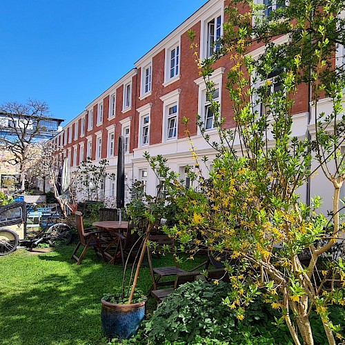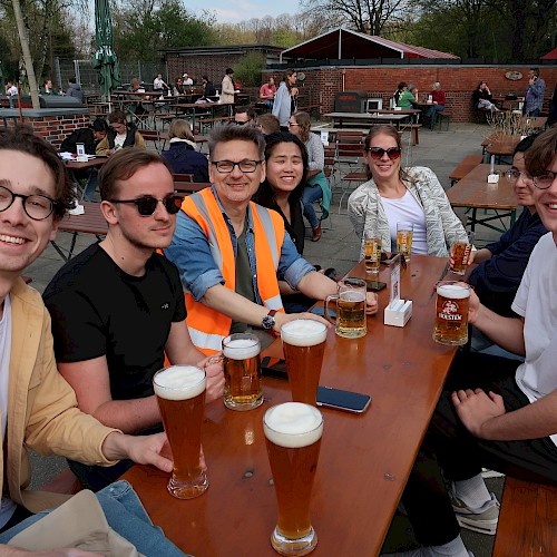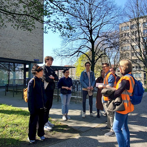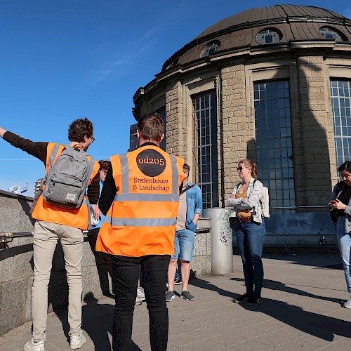 Ieder dagdeel was voorbereid door twee 'reisleiders' die de collega’s meenamen op ontdekkingstocht, gekleed in herkenbare oranje hesjes. Vooral de vrijdag was een intensieve dag waarin we ruim 45 km hebben gefietst. Vanuit de oude Speicherstadt via de Falkenried-Terrassen en het Stadtpark helemaal noordwaarts naar het Ohlsdorf park, wat een begraafplaats en park inéén is.