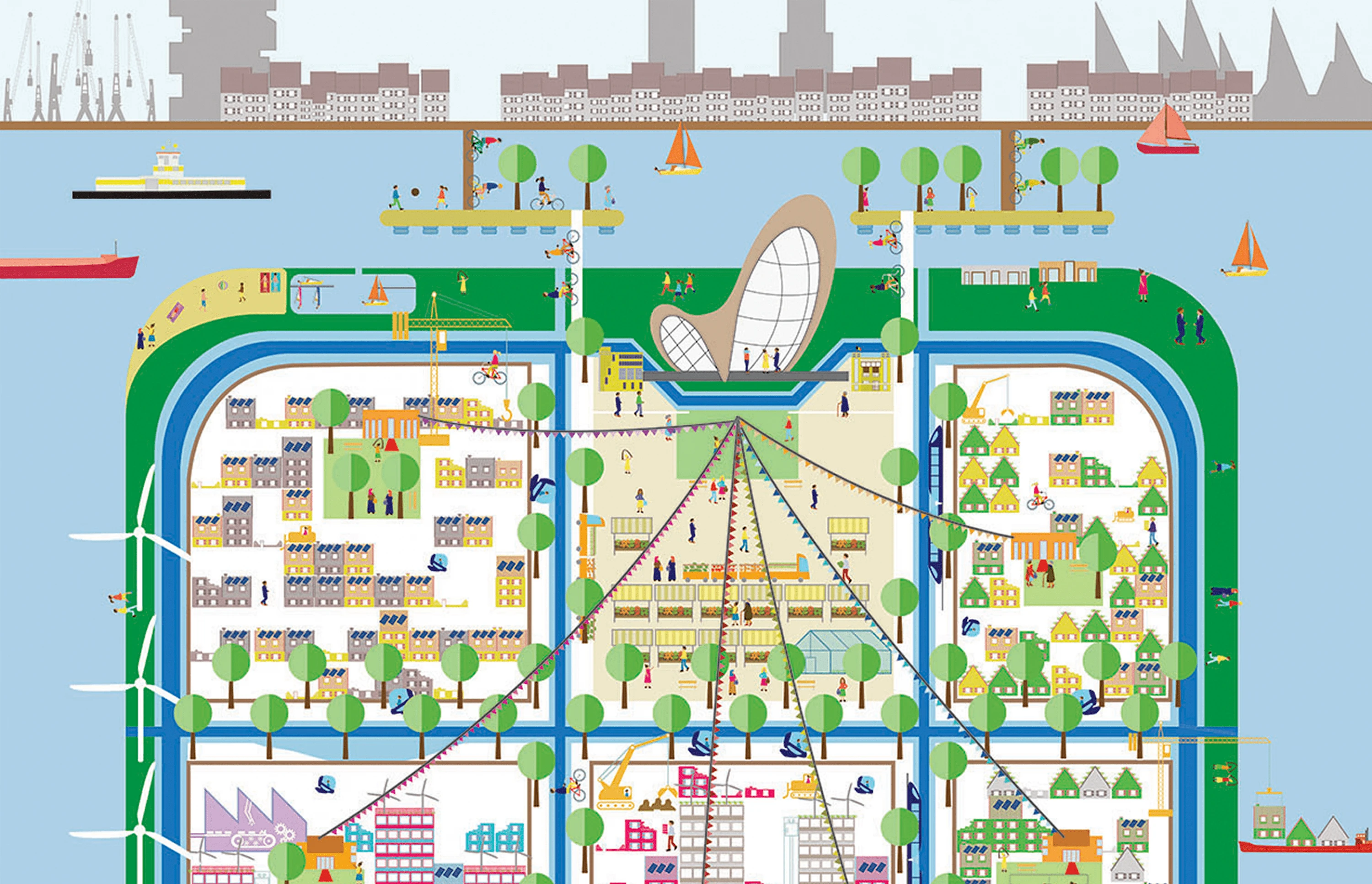 De drie invalshoeken vormen samen een krachtige motor die de transformatie van Linkeroever op gang brengt. Op weg naar een toekomstbestendige stad: een duurzaam en modern stadsdeel aan de overkant van het centrum waarin mensen prachtig en veilig kunnen wonen in een door en door circulaire en schone leefomgeving.
