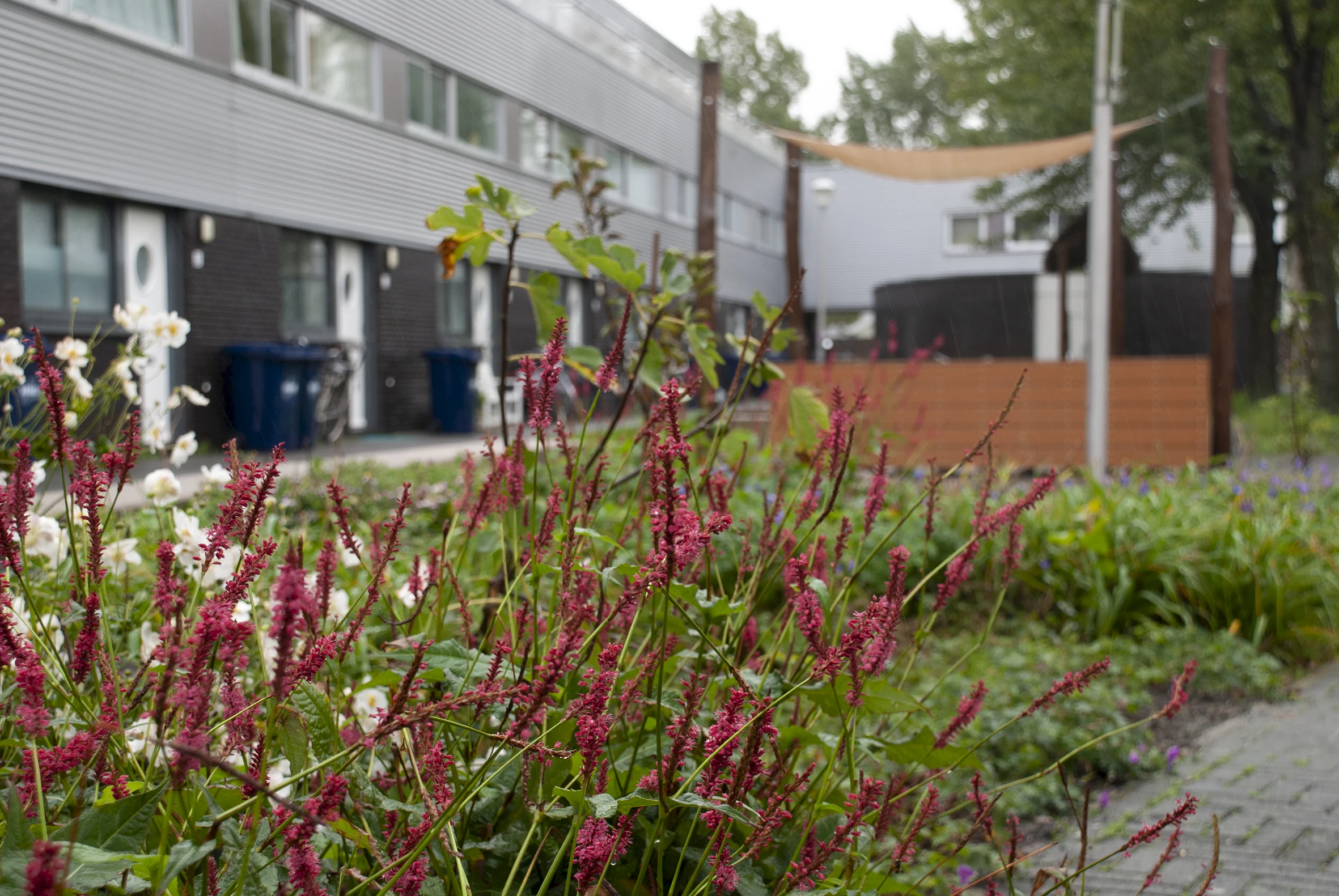 De bewoners van de Bruijnvaart hadden vooral behoefte aan meer groen en meer variatie aan gebruiksmogelijkheden van de binnentuin. Uit alle ideeën is uiteindelijk gekozen voor een jeu de boulesbaan, mooie plantenborders en een speelplek voor de kleinsten. Het oppervlak bestrating is verminderd ten behoeve van meer groen, maar in het midden is een pleintje uitgespaard voor de pingpongcompetitie en zomerse buurtbbq’s. Hier bevindt zich ook een centrale zitplek, bestaande uit twee loungebanken en een composiet houten zitting op de bestaande betonrand. De verschillende speel- en ontmoetingsplekken zijn verbonden door een halfverhard paadje. Met de Gulden Klinker die de bewoners met dit initiatief verdienden, wordt binnenkort de speelplek uitgebreid met natuurlijke speelaanleidingen zoals stapstammen en struikhuisjes.
