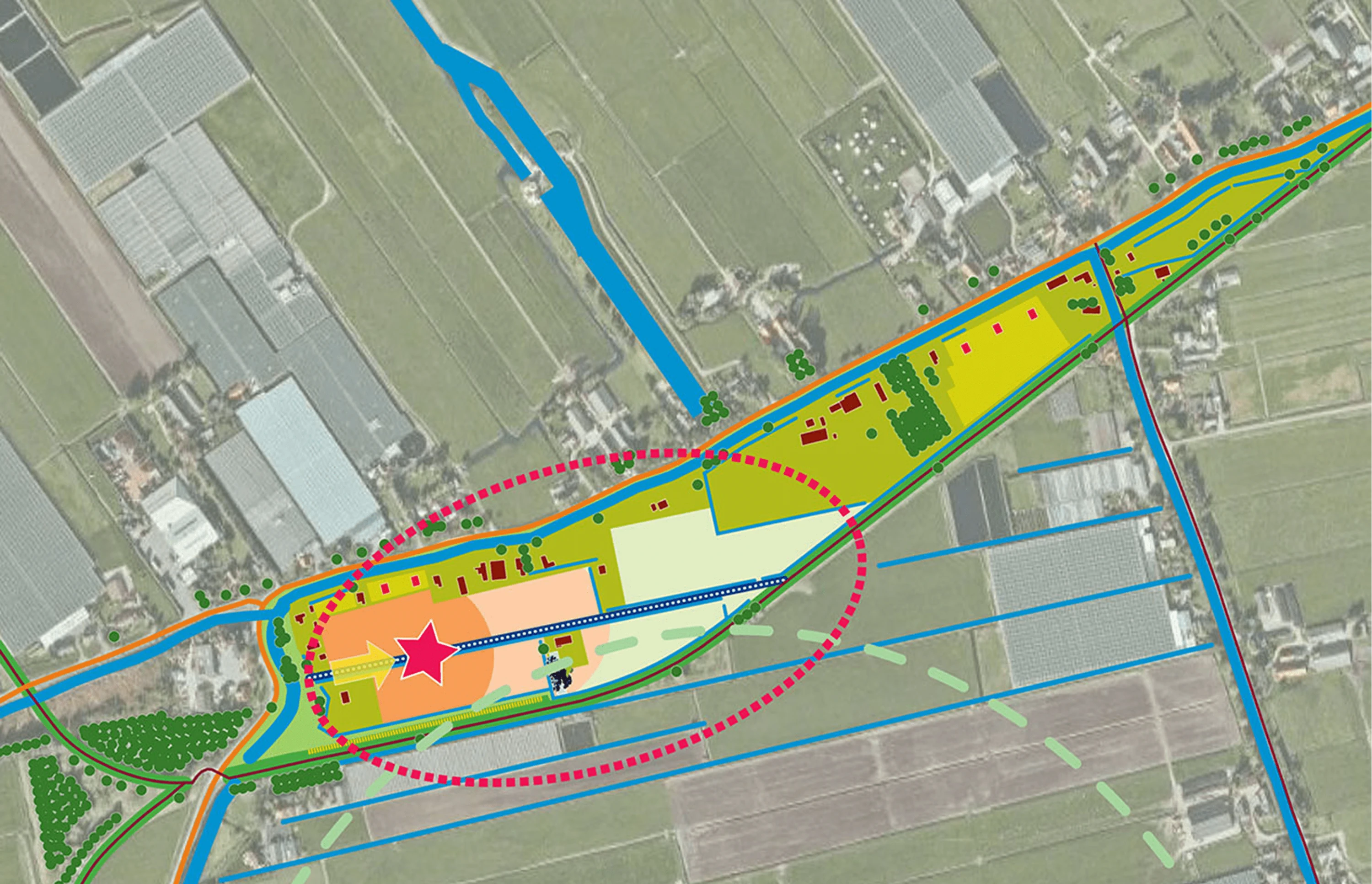 Onderaan de oude tramdijk tussen Schipluiden en De Lier ligt een oud, verlaten kassengebied: Maaslandse Dam. Provincie en gemeente vinden een sanering ervan cruciaal voor de kwaliteit van Midden-Delfland. Om dit te betalen moet echter geld verdiend worden door bouwontwikkeling op de locatie. Hoe valt dit te combineren met de ambitie om het landschap te herstellen?